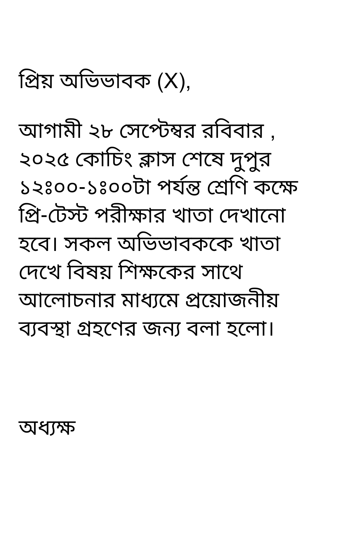 আগামী ২৮ সেপ্টেম্বর রবিবার , প্রি-টেস্ট পরীক্ষার খাতা দেখানো হবে।