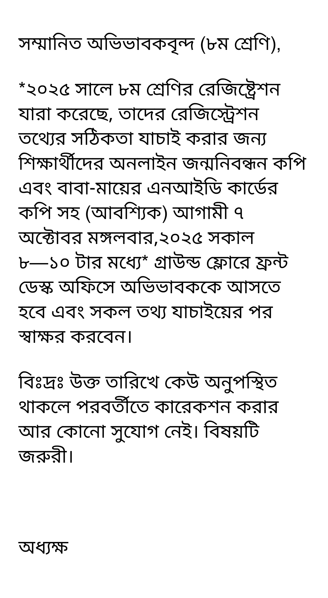 ৮ম শ্রেণীর রেজিস্ট্রেশন