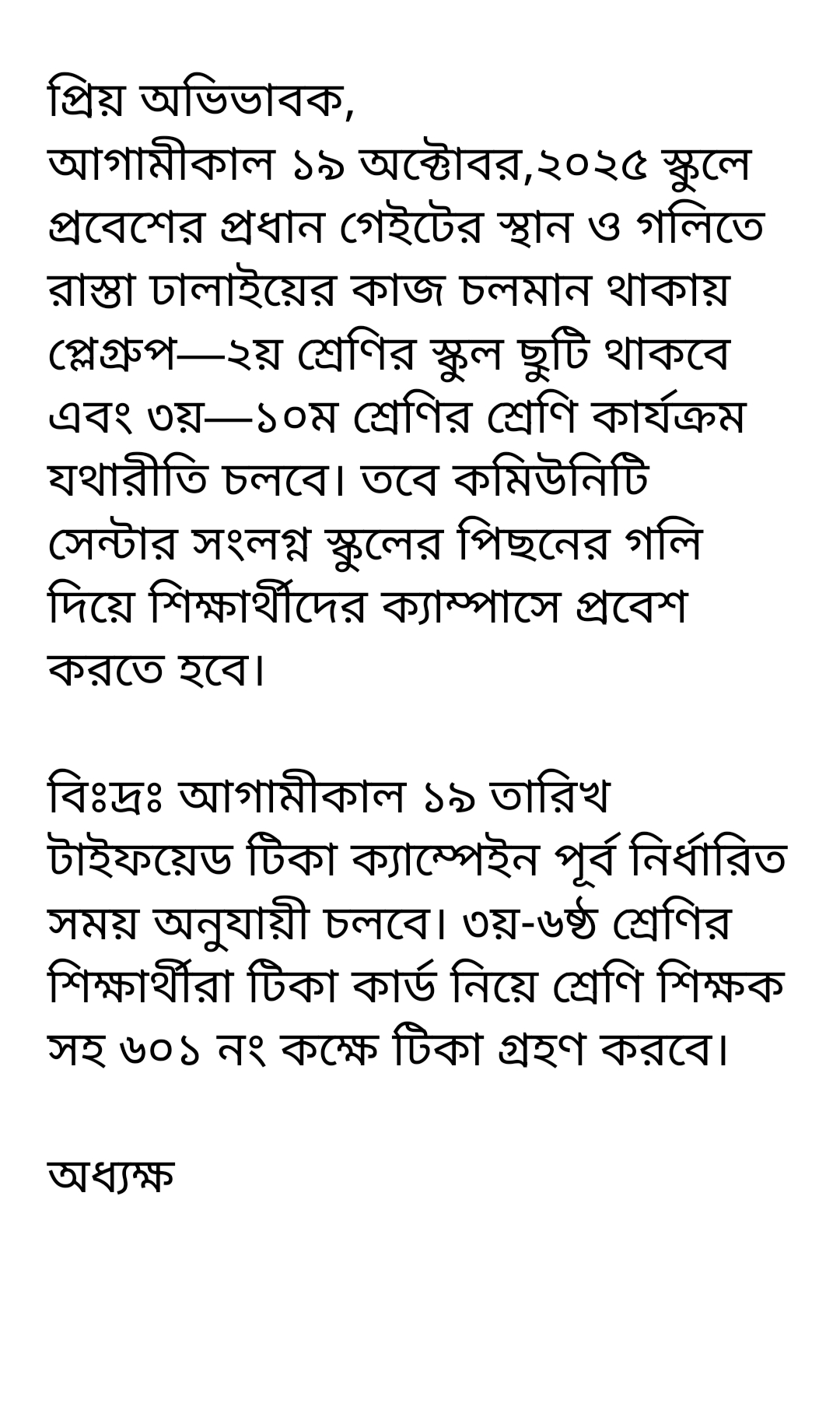 আগামীকাল ১৯ অক্টোবর,২০২৫ শ্রেণি কার্যক্রম