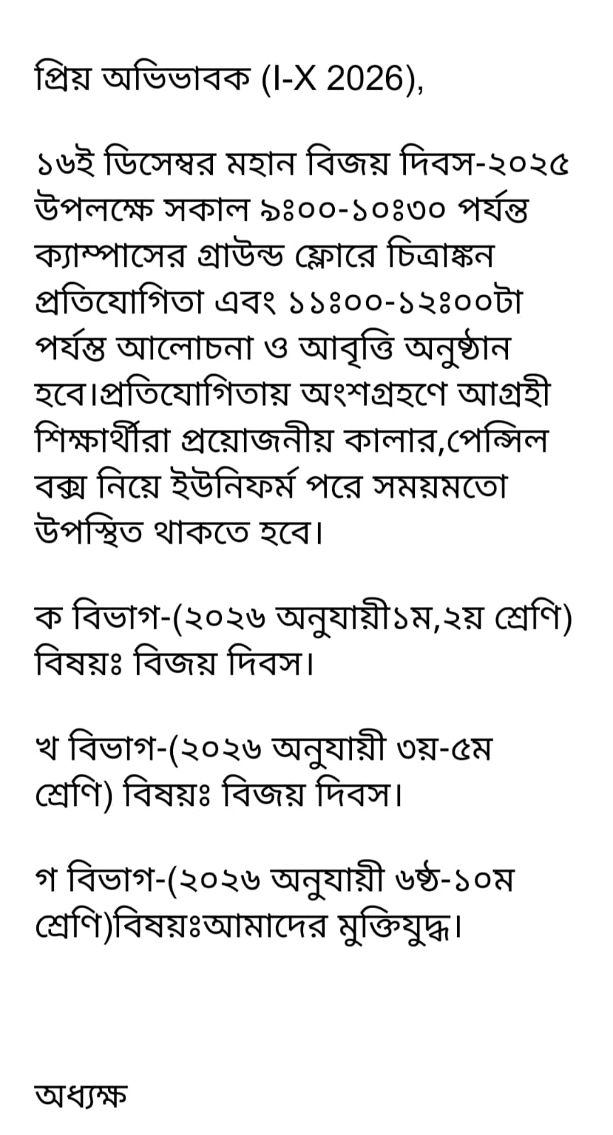 ১৬ই ডিসেম্বর চিত্রাঙ্গন ও সাংস্কৃতিক প্রতিযোগিতা