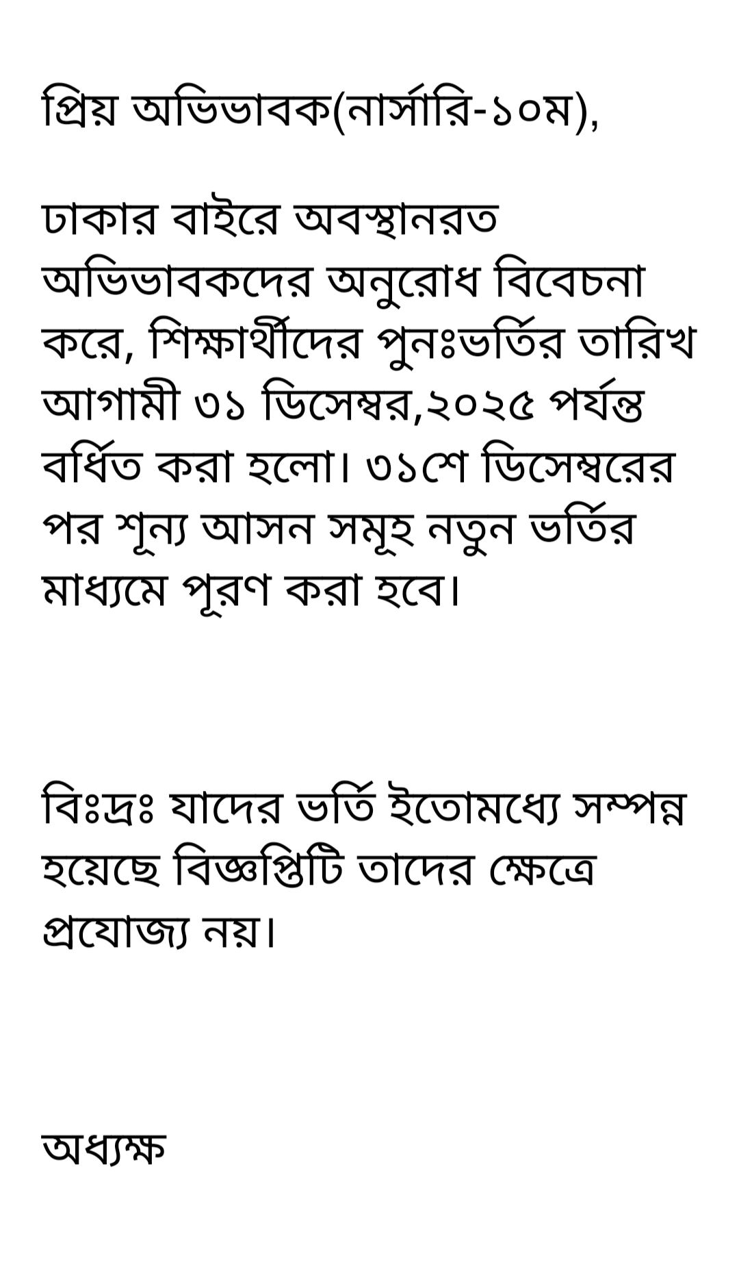 পুনঃভর্তির বর্ধিত তারিখ