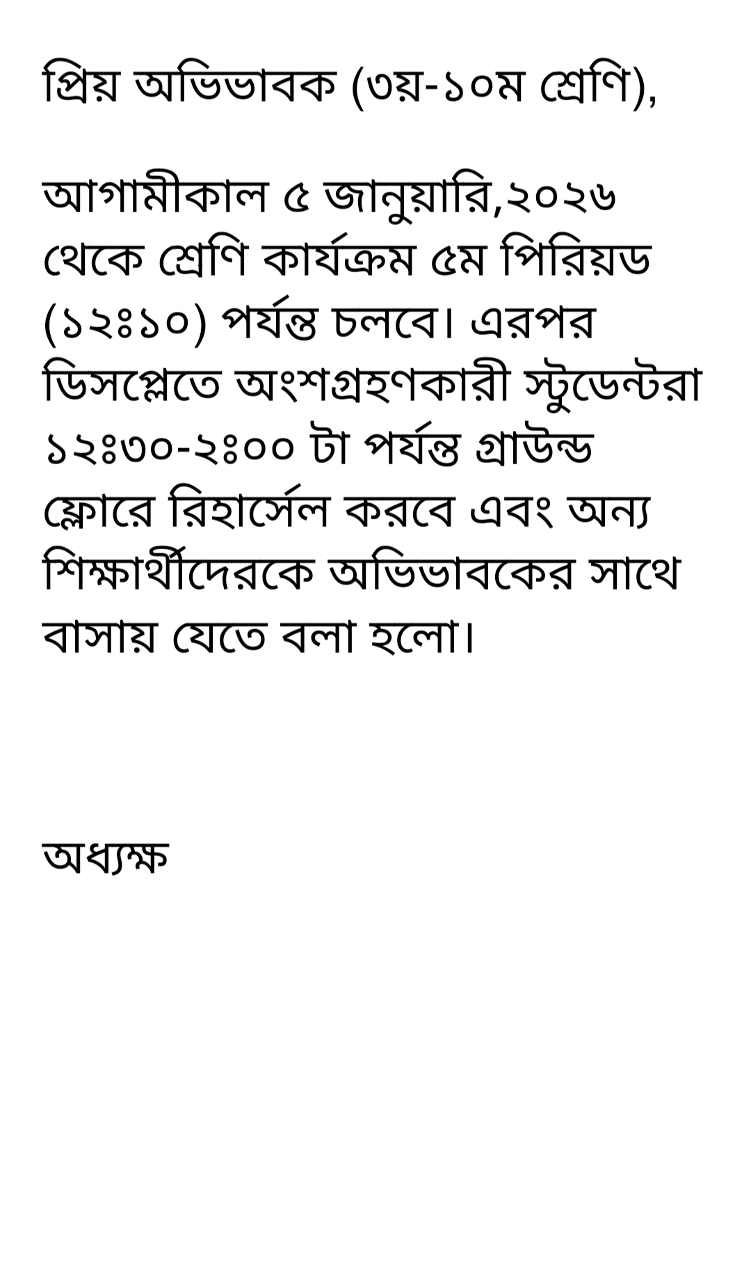 শ্রেণী কার্যক্রমের সময়সূচী