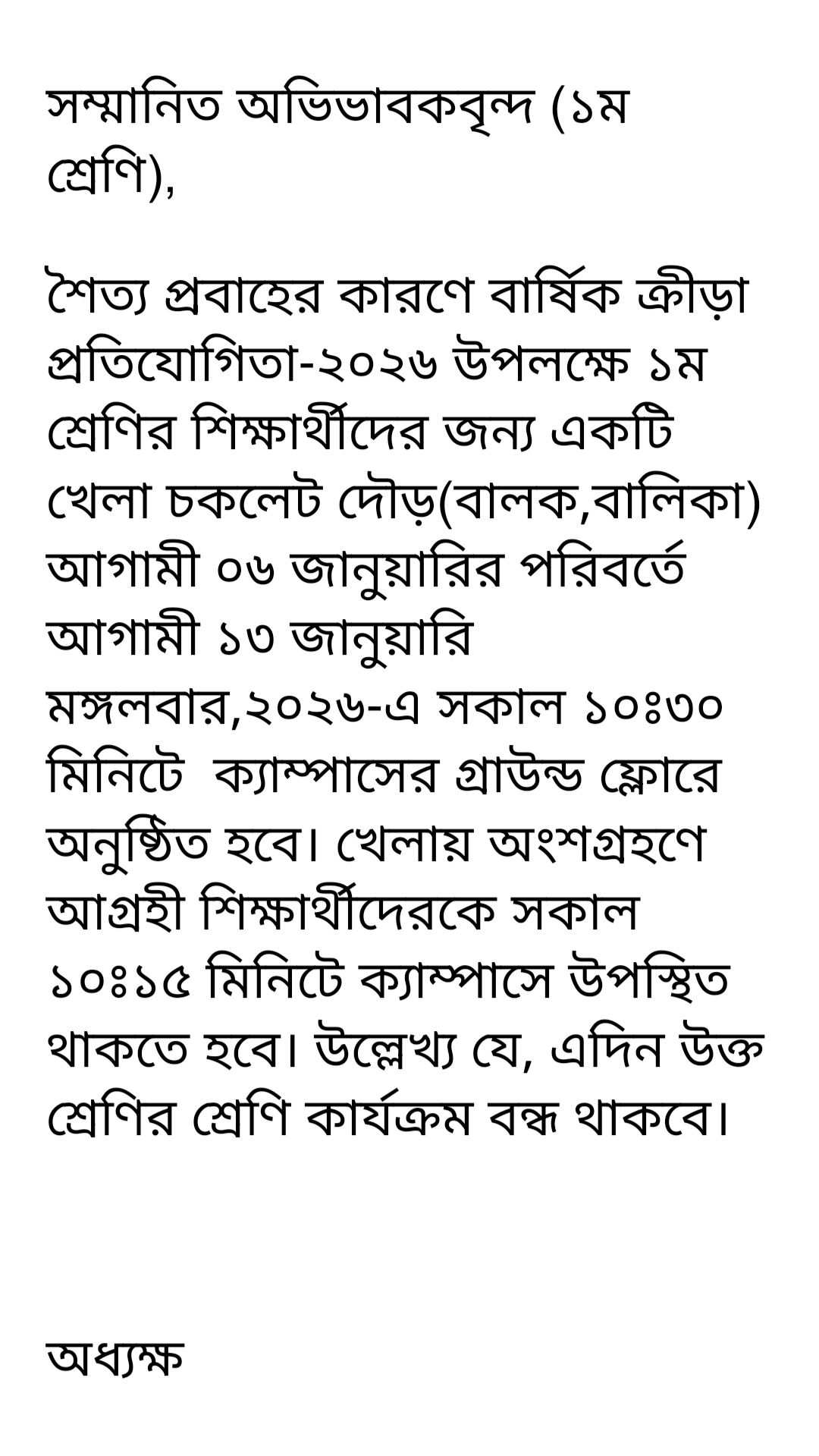 বার্ষিক ক্রীড়া প্রতিযোগিতা -২০২৬ ১ম শ্রেণী