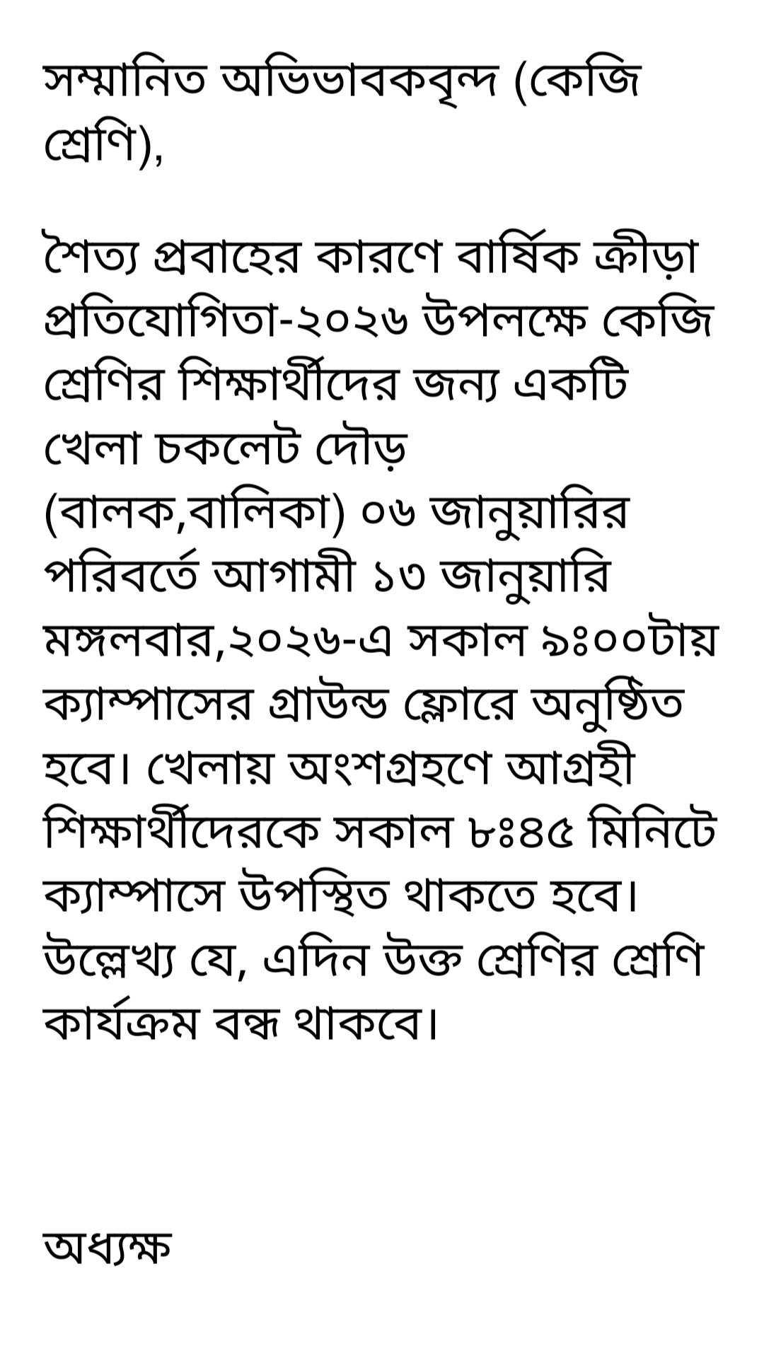 বার্ষিক ক্রীড়া প্রতিযোগিতা - ২০২৬ কেজি