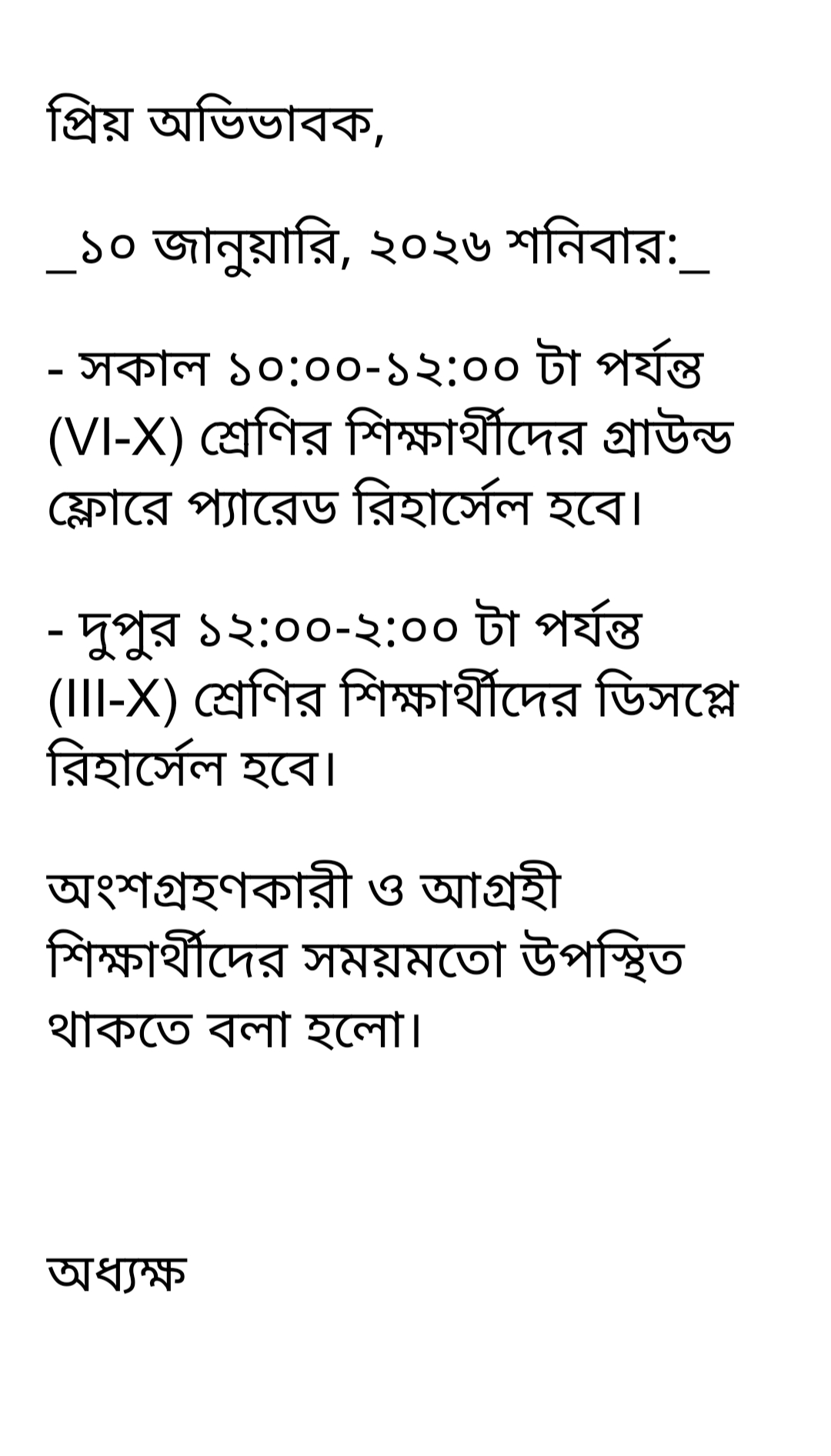 ১০ জানুয়ারি প্যারেড ও ডিসপ্লে রিহার্সেল।