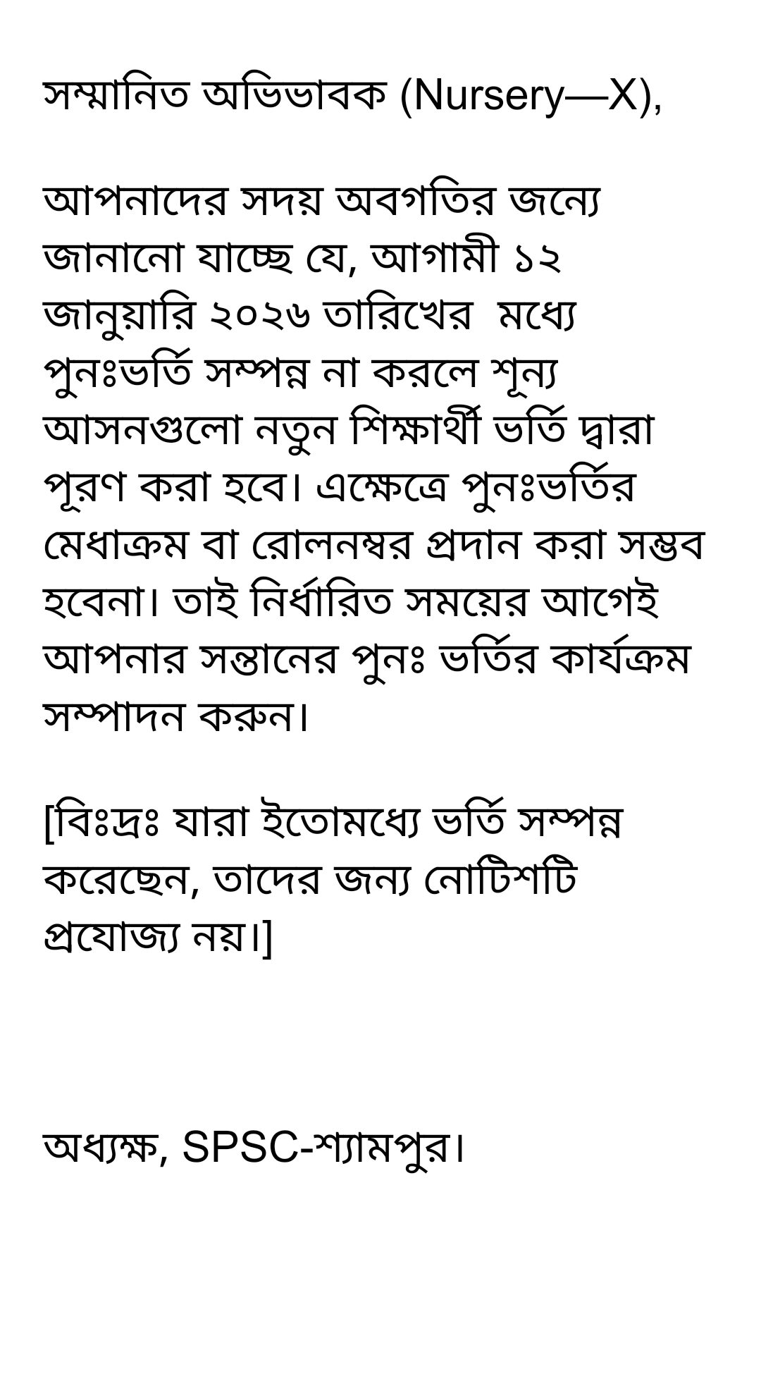 পুনরায় ভর্তি সম্পন্নকরণের নোটিশ।