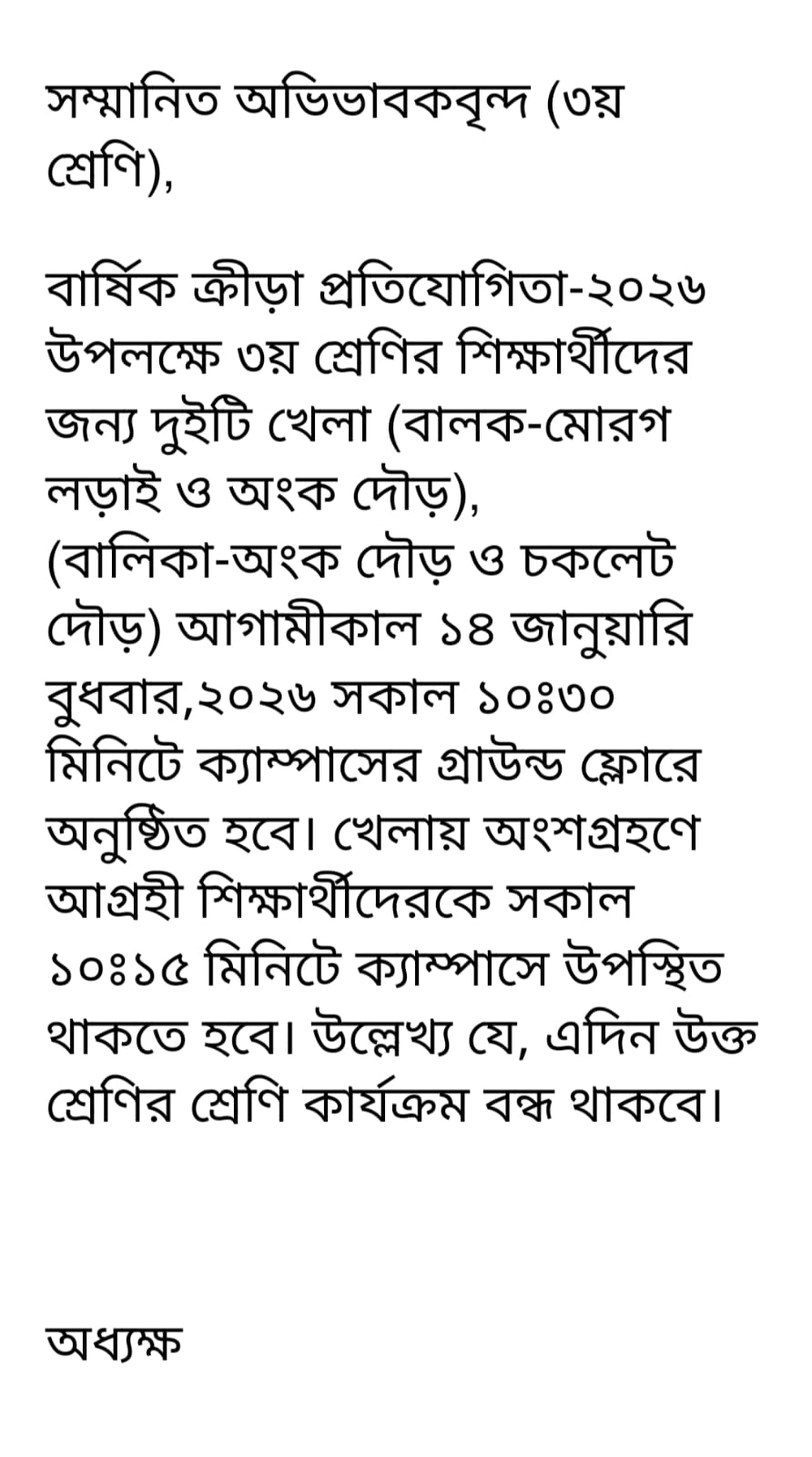 ক্রীড়া প্রতিযোগিতা-২০২৬