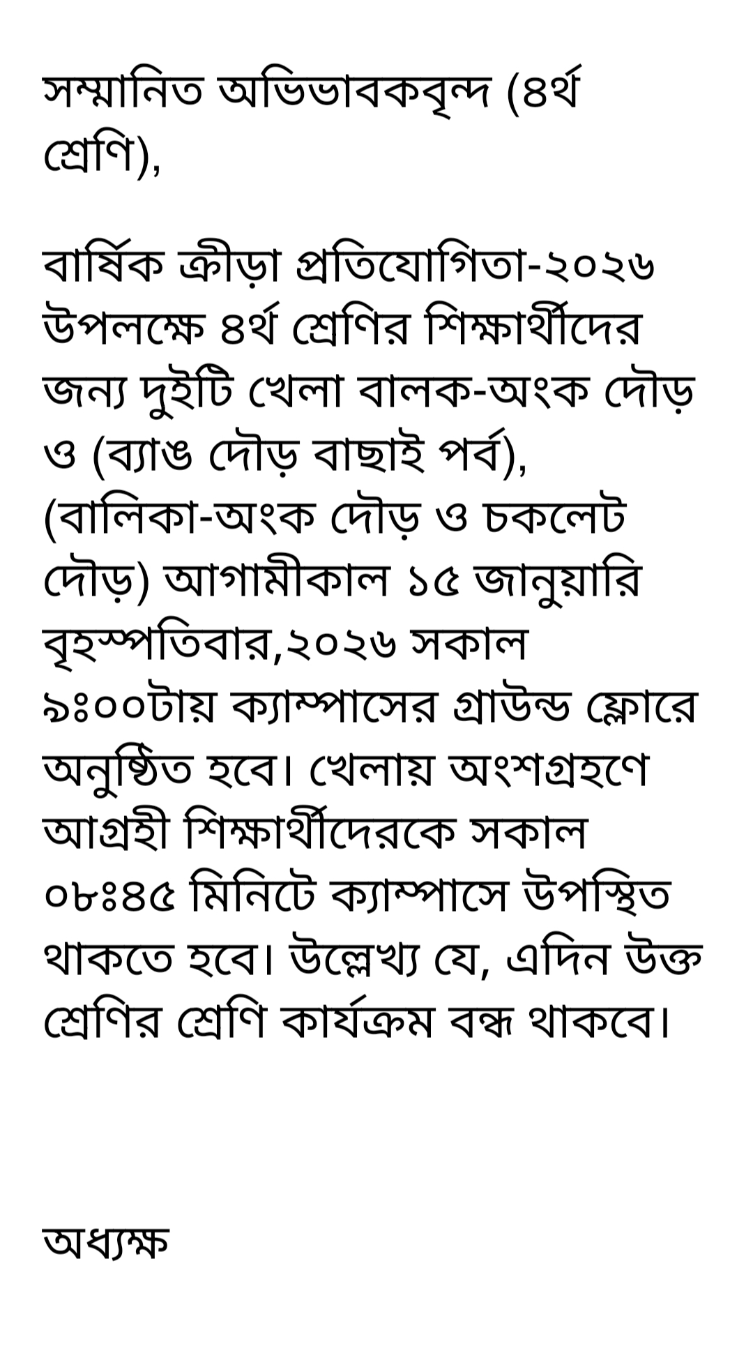 ৪র্থ শ্রেণির বার্ষিক ক্রীড়া প্রতিযোগিতা-২০২৬